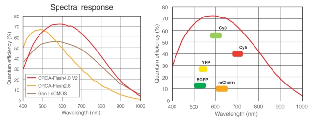 除此之外的其他高靈敏度特性,諸如高量子效率、高速讀出(100幀/秒@400萬像素)等仍然被保留了下來,這使得ORCA-Flash4.0 V2仍然是市場上******的sCMOS相機